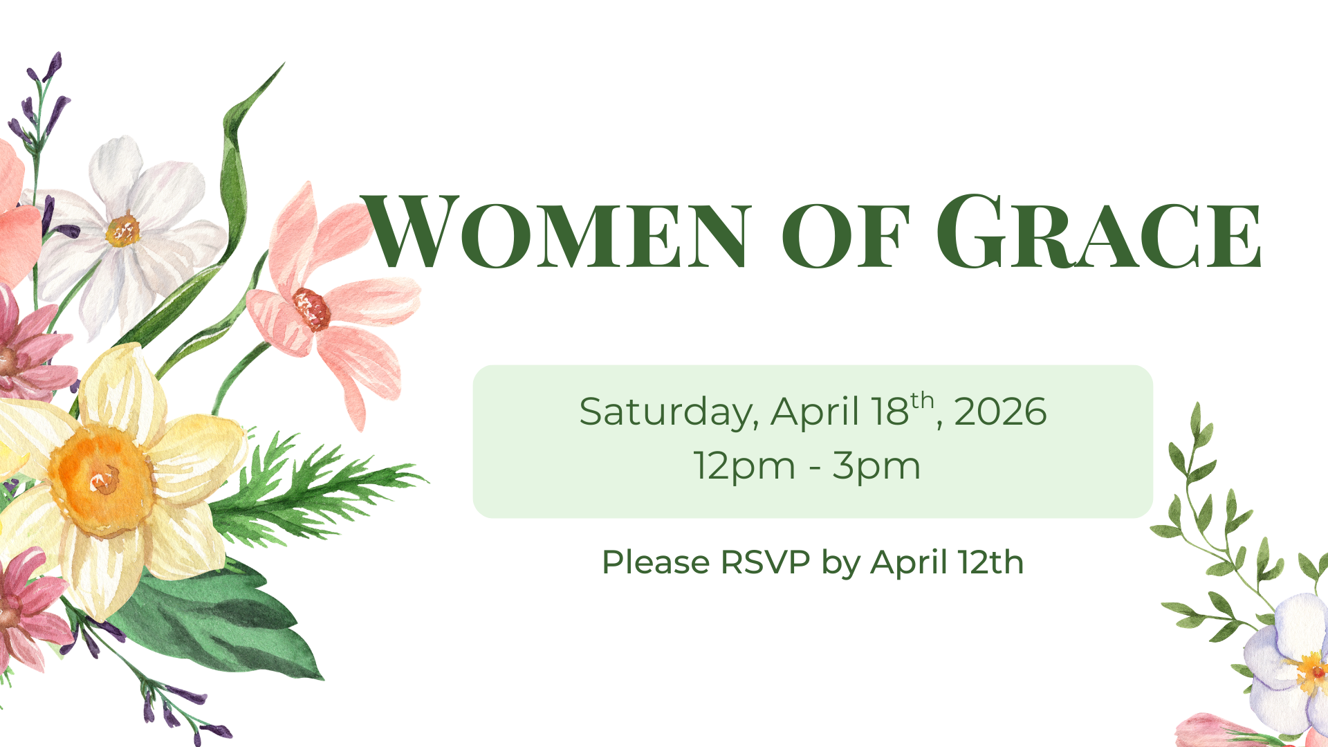 Women of Grace will have our next meeting on Saturday, April 18th from 12pm - 3pm! Lunch will be served, and we will continue our study in Titus 2.